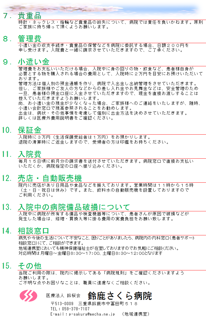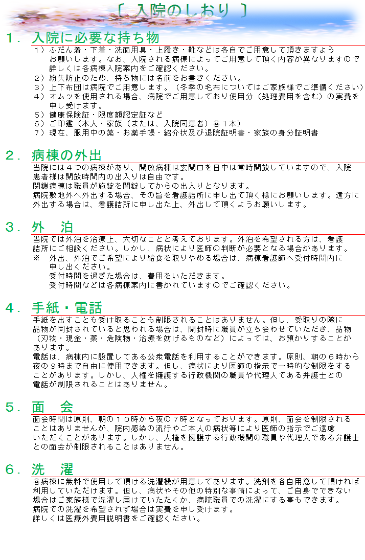 入院生活のしおり