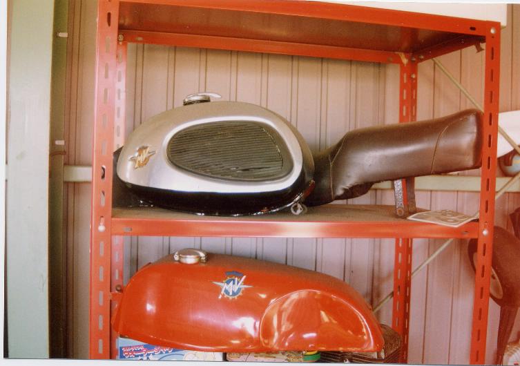 下側-アルミ用スペシャルタンクの試作モデルで鉄製です。その横に125用エンジンヘッドです。