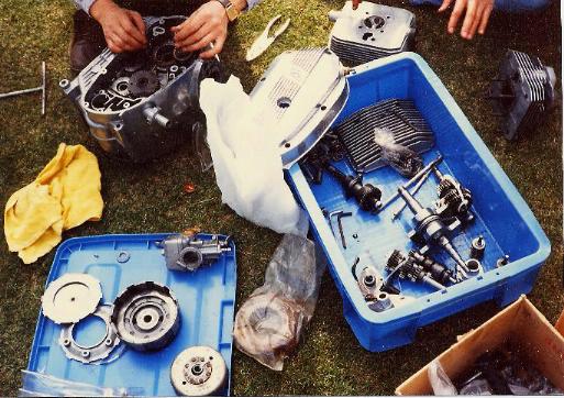 1986年タイムトンネル(東京)にてシートの焦げてエンジンヘッドのバラバラなMVagusta125sをトラックで買付けに行った。三重に帰って名メカニックのO氏により総バラシされブラスト処理される。