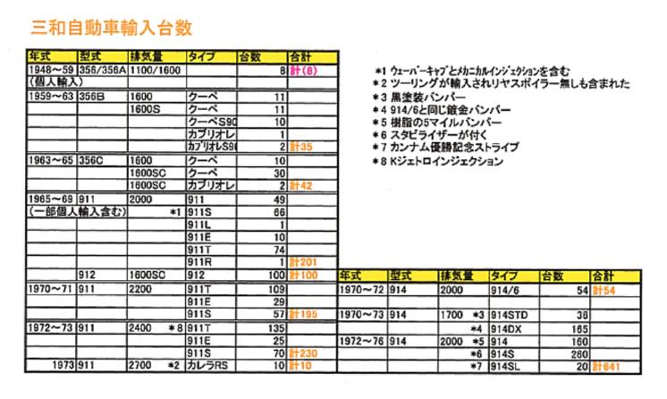 912E(1975〜76)----914から924の移行時に930ボディーに914エンジン(100HP)を載せた912が2000台生産された。欲しい〜。(正規輸入無し)