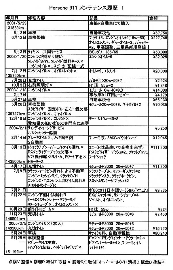 C04年より旧いポルシェ専門店に実績と経験より変更した。エンジン・ミッションのO/H時期は主治医の判断に御任せした。
