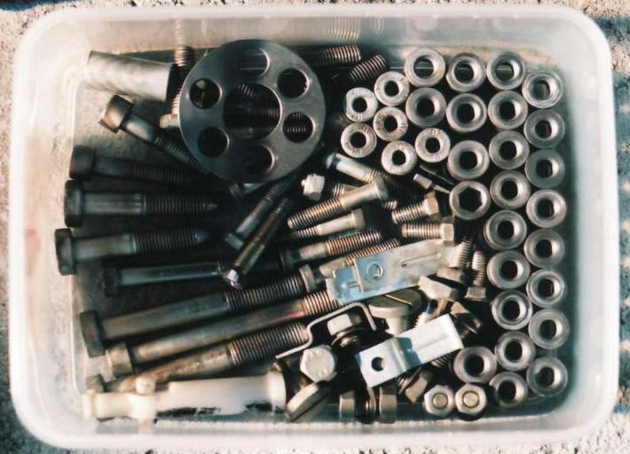 再使用出来ないボルト・ナット以外は、オリジナルの物を再使用する。エンジンO/H時に汚れたボルト・ナットはメカさんに捨てられ、新しい物に置き換わっていく。PCへボルト・ナットを注文しても、『kamax』のオリジナルでない物が届く→使えない。