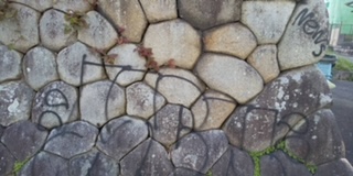 見附??玉石垣にネットでも、と思いきや落書き?!