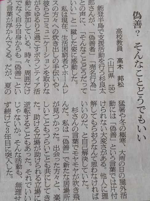 更新日:2024年02月04日 <呟き21> NATO! NATOとは北大西洋条約機構を意味しますが、私がここで言うNATOは 「言うだけで何もしない人”No Action Talking Only”」です。 能登被災地に、杉良太郎さんのこんな記事が! 80歳で能登で「炊き出し」福祉活動に海外国内で私財40億、素晴らしい方です! 他人の善行をひねくって批判する。ならば自分でやってみたらどうですかと申し上げます。 <老人の呟きを聞いて頂きありがとうございます。> 呟きに戻る ホームページに戻る