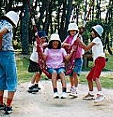 厳しい合唱練習の息抜きはアスレチックで快い汗を流します。