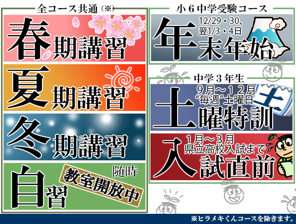 | 新小4・ 新小5・ 新小6 総復習講習 |