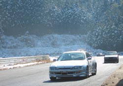 | まず先生の車(スタッドレス仕様)に乗せてもらいコースイン、ライン取りやBP・CPなど教わった。 1コーナー進入も当然、ロングと比べると全然違うし、自分が思いこんでいたBPやライン取りも違う。 聞いて良かった〜!そして、先生にもカレンちゃんを運転してもらうことに・・。 2ヘアピンでは‘ぐわんぐわん・・’と変な音出してドアンダーなカレンちゃん。。 フロントがちょっと重いね〜って言われちゃった・・。リアばっか軽量化しちゃってるし余計やな・・。 今度はうめ吉が運転して、スピン多発コーナーでの処理の仕方など相談に乗って貰った(笑。 今までわからないままに走ってたけど、こーやって不安を少しずつ解消してくことによって、余裕が 出てくるし、次のステップへ進める。ライン1つ変えるだけで、そのコーナーが易しくなるもんだ・・。 ブレーキ・ステア・アクセル・・この操作1つ1つのタイミングをもっと考えなアカンな・・。 ん?また赤旗かな・・?1コーナーでスピンした車が脱出出来ない模様。敢えなくピットイン・・。 |