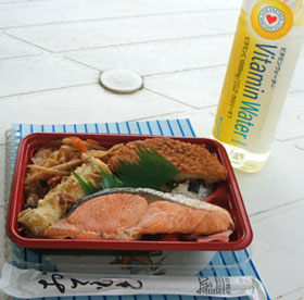 2時間の走行を終え、やっとお昼ごはん。。 あんなに走る前お腹空いてしゃーなかったのに、2時間目くらいからバテてきて、頭もボーっとしてきてて・・。 なんとなく食欲低下気味・・けどもう2時やもん・・この1時間休憩の間に食べとかなアカン。。 今日のお弁当はご覧の通り。 明らかにのり弁ベースやのに鮭一切れ載ってるだけで『鮭弁当』と名づけられたもの。 2時からは珍しく2輪車が2台走りに来てたので、それを眺めながら日陰でまったり食べました。 緑の綺麗な木々、空と雲のコントラスト、頬をなでる優しいそよ風、適度な走行音・・ 凄くリフレッシュ出来た時間で、なんとも言えず気持ちよかった〜☆ さぁて・・あと1時間でコンマ5秒以上詰めやな・・(>_<) どこを削るか!? 2時間の反省とそれを踏まえた今後の課題、そしてどう残りの1時間でまとめるか。。 とりあえず左リアのエアを入れよう!そう思ってコンプレッサーのあるとこへ車を移動。 ふと気づくと私は、助手席側のスカッフプレートに腰掛け、足を外に放り出して居眠りしてしまってた様子^^; 我に返ってALTの時計を見に行くと・・うっそー、13:50やん!! 急いで計測器を取りに事務所へ・・(私だけしかおらんから置手紙式でした)。 そして、急いで水分補給するため自販機の前に行く。すると、珍しいジュースを見つけた♪ 「牛乳でおいしく冷たいココア」確かこんな名前やったかな・・これがめちゃヒット☆美味しかった!! |