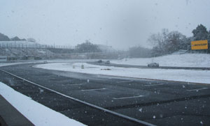 | 結局朝のブリーフィングは1時間近く遅れて開始。まだ参加者の半分くらいしか到着してないみたい。 ずっと待ってるわけにもいかんので・・ということで、1グループの走行時間を当初は25分やったけど、 20分に短縮してスケジュールを進めることになった模様。 私は例によって一番最後のDクラスなんで、走行開始までかなり時間が出来てしまった。 とりあえず雪も降り続いてるし、午前中は助手席は外さんことにした。 ホントは出来るだけ軽い状態にしてタイムアタックしたかったんやけど・・なんせ雪やし(汗。 昼からは晴れてくるって予報やったから、もし陽が出てきて路面の状態が良くなったら外そうと思った。 外はめちゃくちゃ寒かったんやけど、頑張って他のグループの走行を見ることにした。 ここ南コースの路面は他とは違い、ちょっと濡れただけでもかなり滑りやすくなるとか・・ なので、各クラスとも皆さんあちこちでスピンしたり滑ったりしてました。 タイム的には1分14秒台がトップ。20秒までに入れば速いほうなんかなって感じでした。 |
