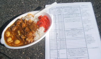 これが名物・モロマエ特製カレー!今回は肉団子カレーでした♪(チーズのトッピングもあったよ) タイムスケジュール表と一緒に付いてた『セッティング・フィーリング・チェックシート』も何気に役立って良かったなぁ。 |